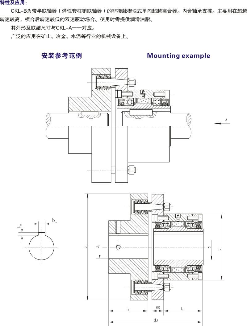 CKL-B為帶半聯軸器(彈性套柱銷聯軸器)的非接觸楔塊式單向超越離合器