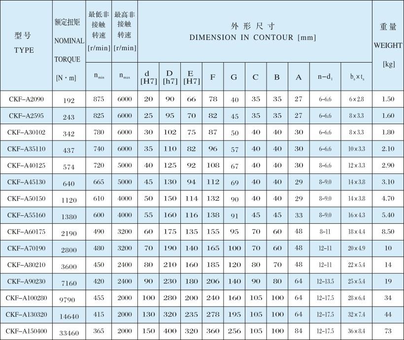 CKF-A為非接觸楔塊式單向離合器,內環旋轉。