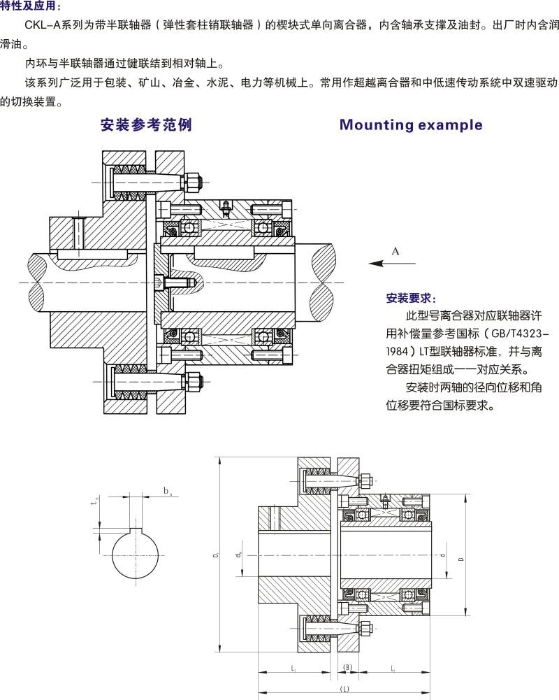 CKL-A系列為帶半聯軸器(彈性套柱銷聯軸器)的楔塊式單向離合器