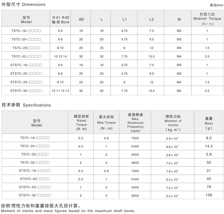 5. 剛性聯軸器兩端不同孔徑大小的產品型號也備有庫存