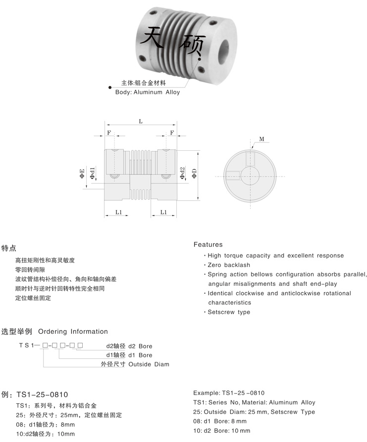 1.”波紋管聯軸器”無間隙,高靈敏度