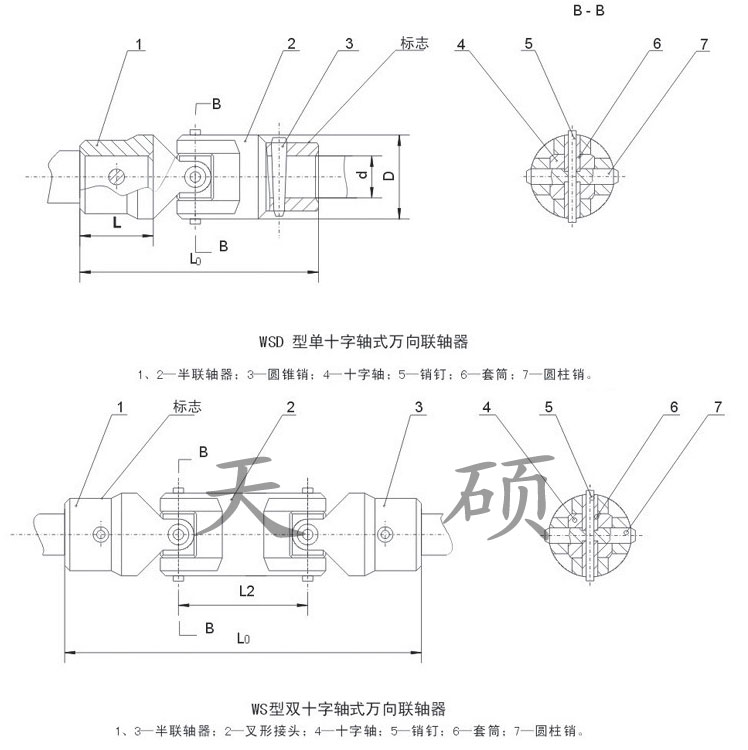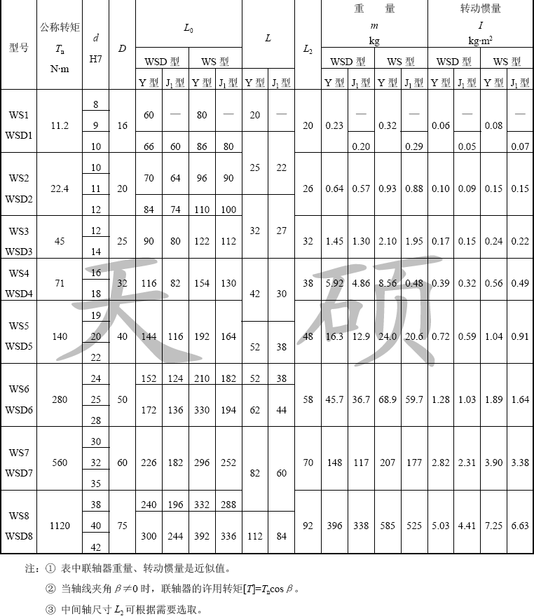 本萬向聯軸器適用于聯接兩軸軸線夾角β≤45°的傳動軸系;傳遞公稱轉矩11.2~1120N·m 的單十字軸萬向聯軸器和雙十字軸萬向聯軸器。